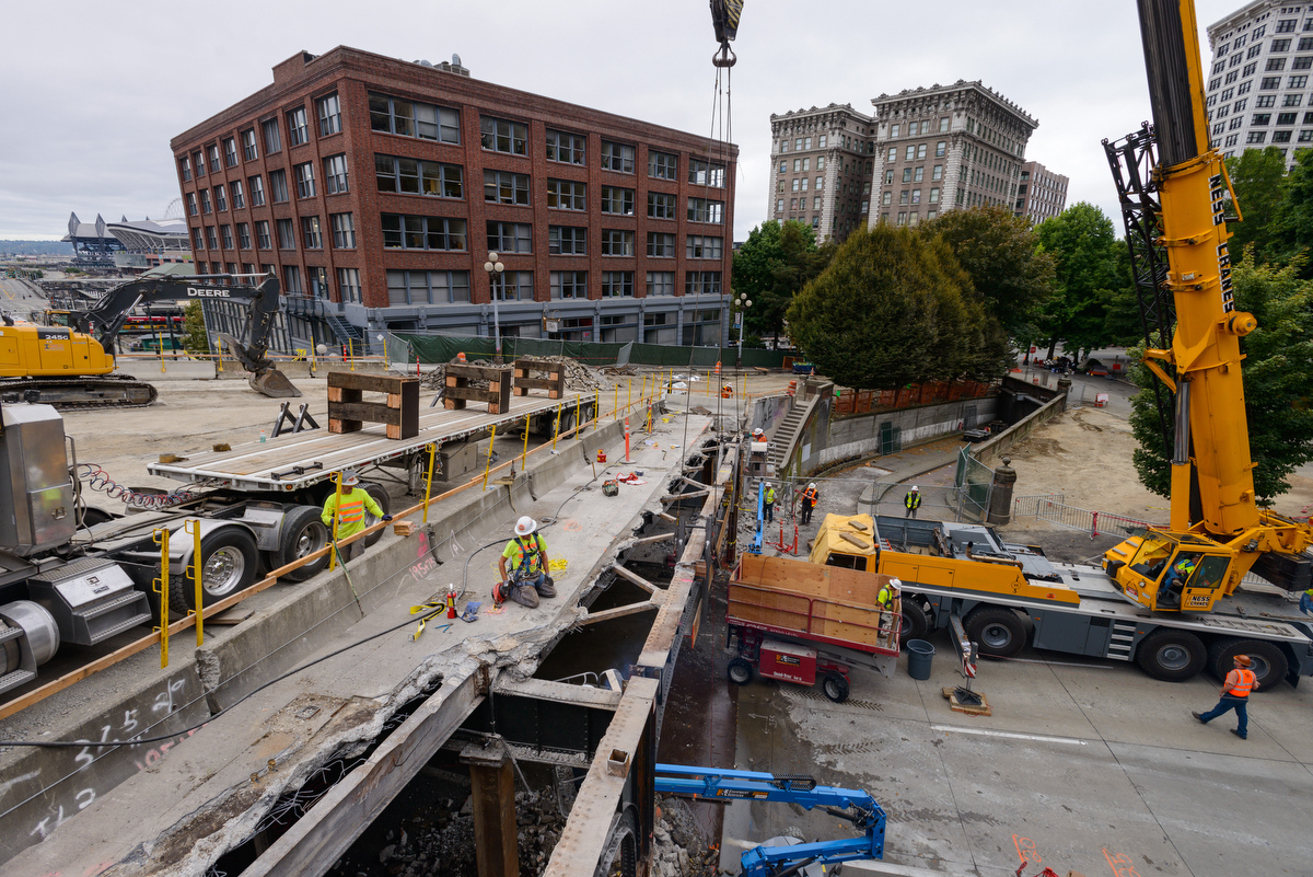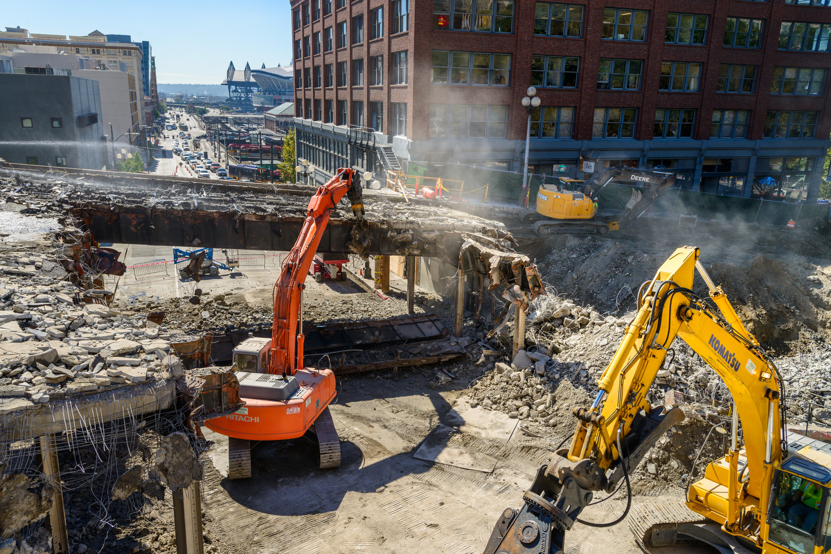 The Yesler Way Bridge is located in the Pioneer Square Historic District of Seattle and serves as the gateway to downtown. The 100-year-old structure was a non-redundant, three-span superstructure. The columns were less than 11 inches from the 4th Avenue sidewalk curbs, with no other barrier from potential vehicle collisions. The bridge was constructed before seismic design codes were in place. The bridge also connects traffic spanning east to west across Interstate-5 and is a vital route for residents, commuters, and workers.
