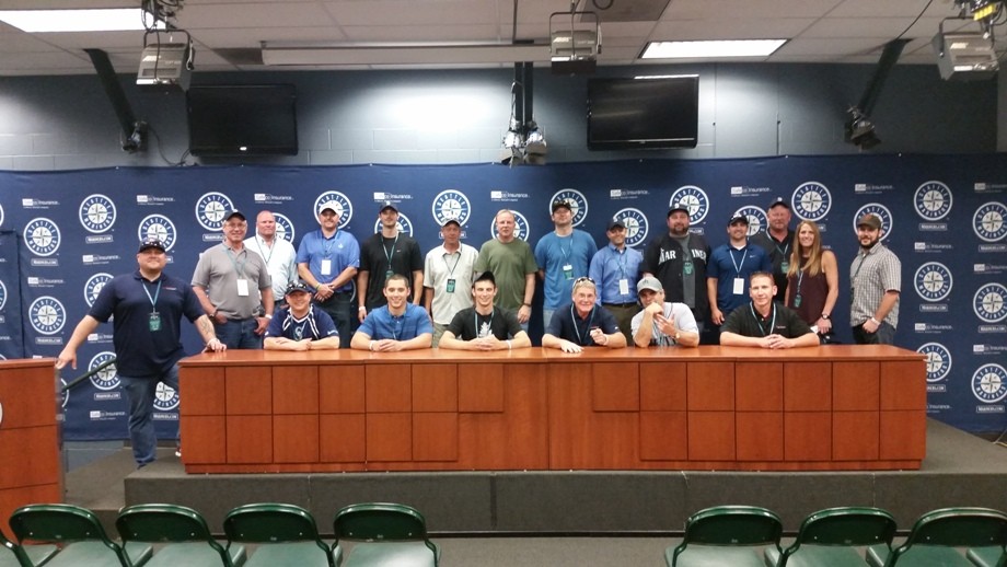 IMCO’s I-90 project team takes a seat in the Seattle Mariners’ press conference room at the May 18th game vs. the Giants.
