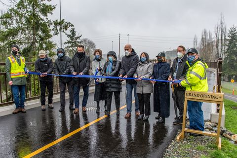Bellevue Mayor Lynne Robinson, congressmen and community members gathered on a rainy Pacific Northwest morning for the ribbon-cutting ceremony. At the event, Congressman Adam Smith said that the completion of the first two segments represents what collaboration can accomplish. Congressman Rick Larson talked about the importance of infrastructure in connecting communities and how the project shows that good things can be achieved even in difficult times.”
