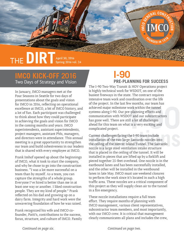 HomeNewsroom The DIRT Newsletter Highlights, Volume 24 Newsletter IMCO Kick-Off, Project Updates, Commitment to Safety the_dirt_vol_24_highlights.pdf
