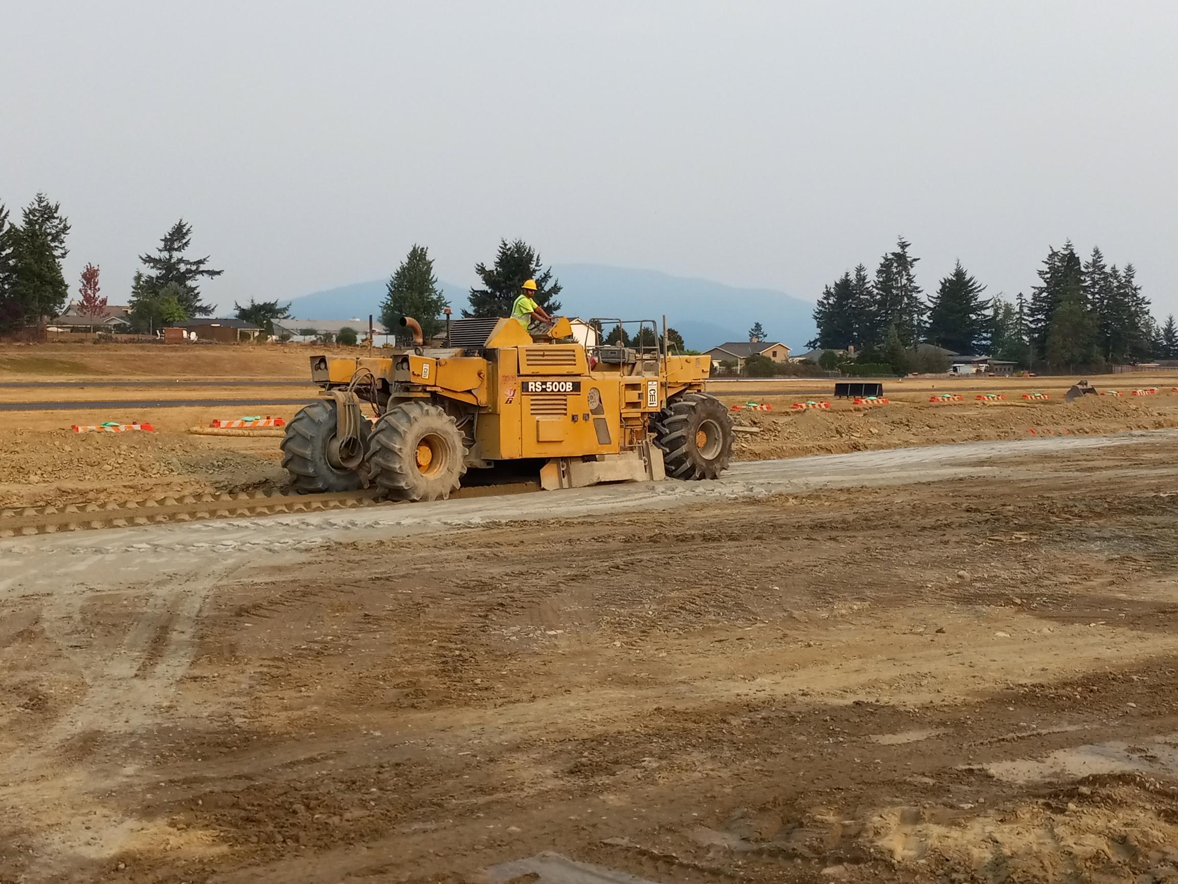 The primary goal of the project was to improve existing drainage issues at the Anacortes Airport. The airport is a federally funded public airport open 24 hours per day, every day of the year. Crews graded an existing drainage channel and constructed new underdrains and catch basins. The contract included the removal of approximately 3,600 square yards, or 3/4 of an acre, of existing asphalt pavement. The project also modified the existing ground cover with cement treated subgrade, repaved the work area, and installed 27 new concrete tiedown anchors used to secure airplanes.