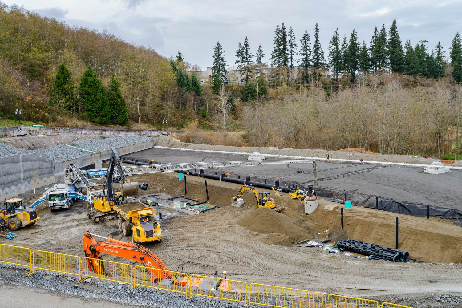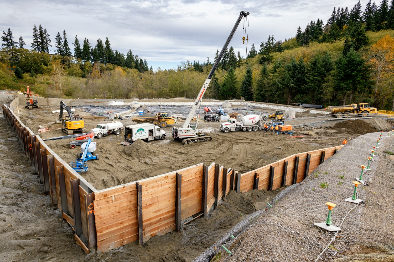 IMCO collaborated with the design firm to provide preconstruction services and support design development from 30 to 100 percent completion. Construction scope included mass excavation of the existing facility, steep-slope stabilization, reconfiguration of storm piping serving the 700-acre Boeing site, and reconstruction of the filter system along with the underdrain and disbursement piping.