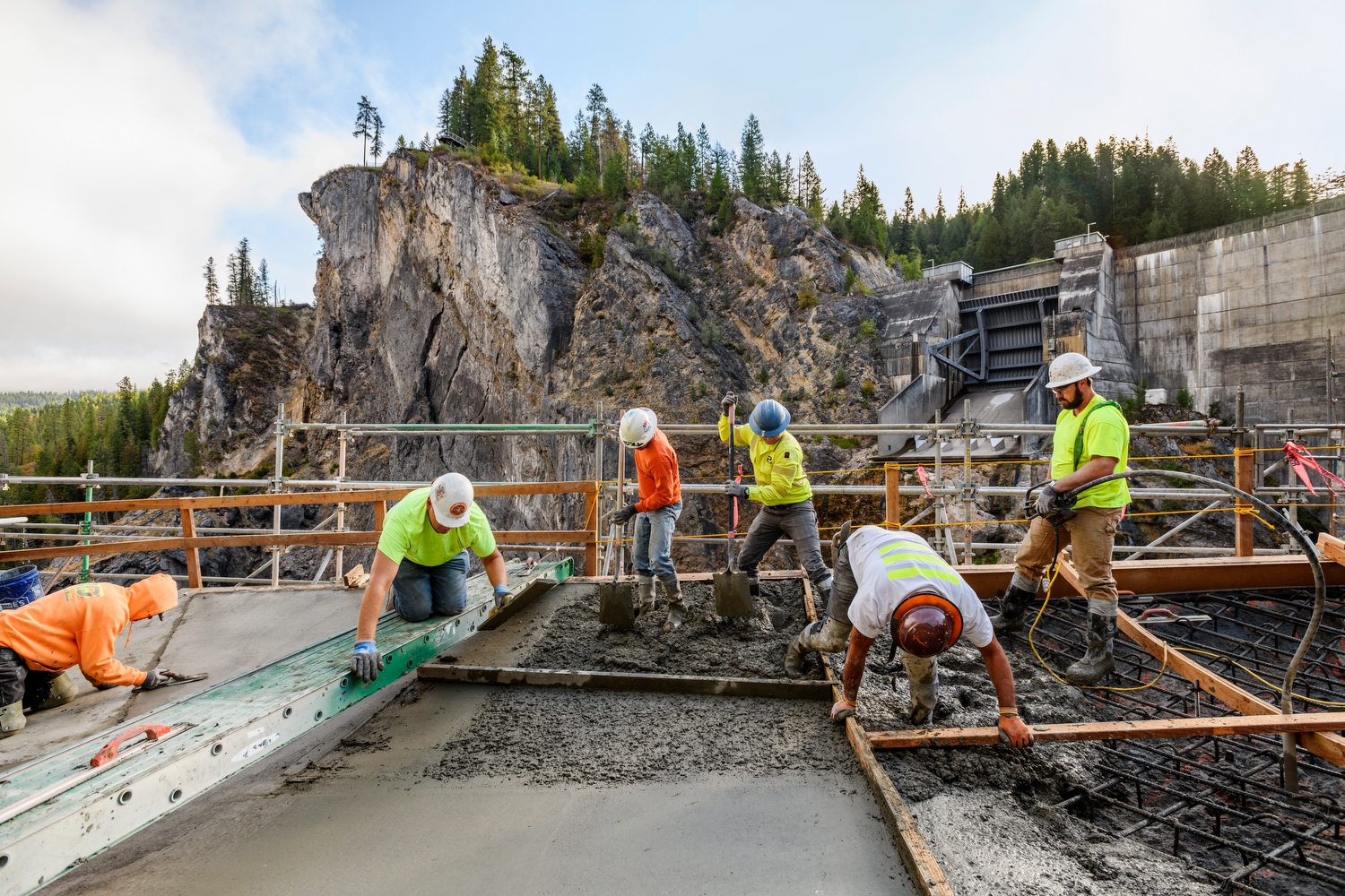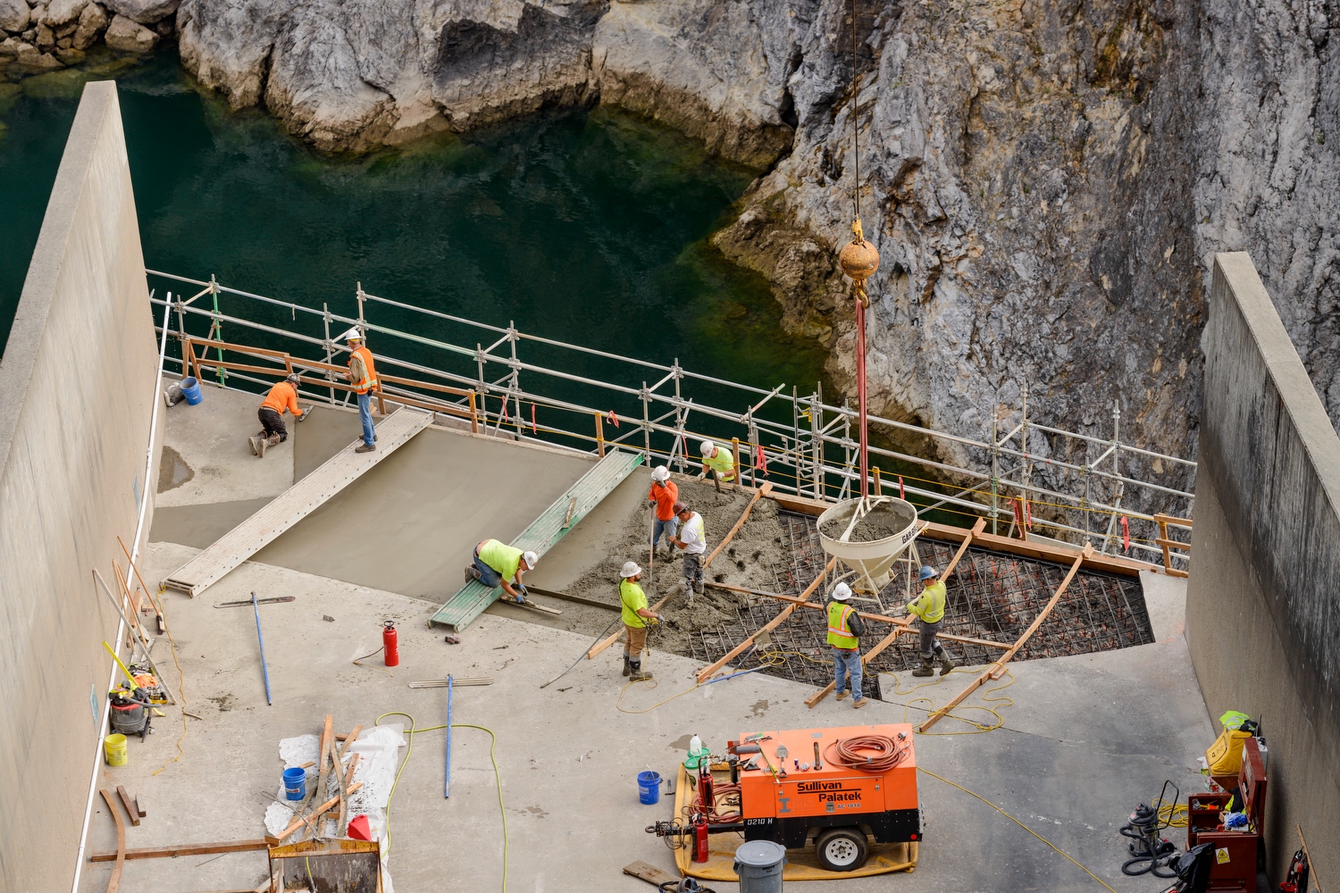 IMCO Construction was contracted by Seattle City Light to complete the removal of TDG modifications previously installed on the spillway. The Boundary Dam Spillway No. 1 TDG Modifications contract included removing ramps and roughness elements embedded in the spillway concrete, decommissioning post tensioned anchors, and removing stainless-steel ramps. Crews also installed reinforced concrete infill to match the pre-TDG modification spillway surface and placed spill containment, and other environmental controls. This project provided a safer spillway design at Boundary Dam, with less mist impacting the effectiveness of sensors, and the project decreased environmental impacts downstream due to TDG.