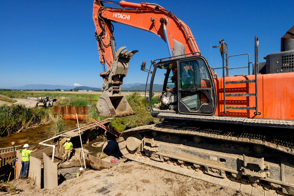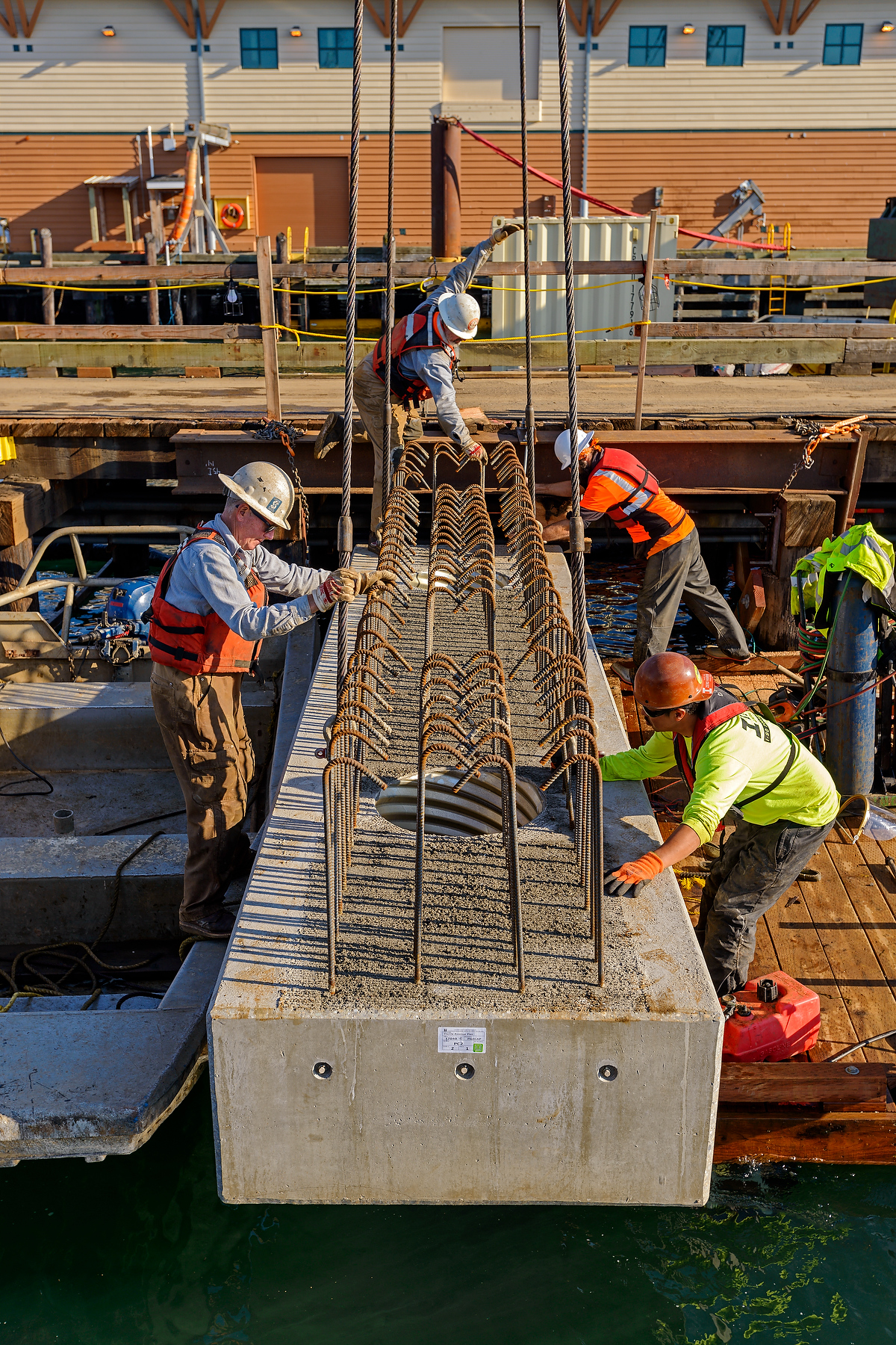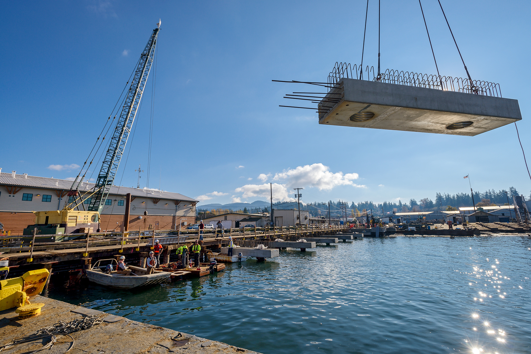 IMCO was awarded this contract in March 2017 to dredge and make infrastructure improvements around the Fairhaven Shipyard property near the Bellingham Cruise Terminal on Harris Avenue in Bellingham, Washington.About half of the cleanup project was funded through the Model Toxics Control Act, which was funded through a tax on hazardous substances, including oil. The project cleanup and construction work had to stop at different times of the year in order to protect marine life in the area. Crews worked in the middle of the working shipyard to remove a 10,000-square-foot building that was situated over the water. The contract included the removal of contaminated sediment, and replacement of the wooden portion of the pier with concrete. The new shipyard pier was constructed with steel pilings and a concrete deck, matching the section of the pier that was constructed in the 1990’s.
