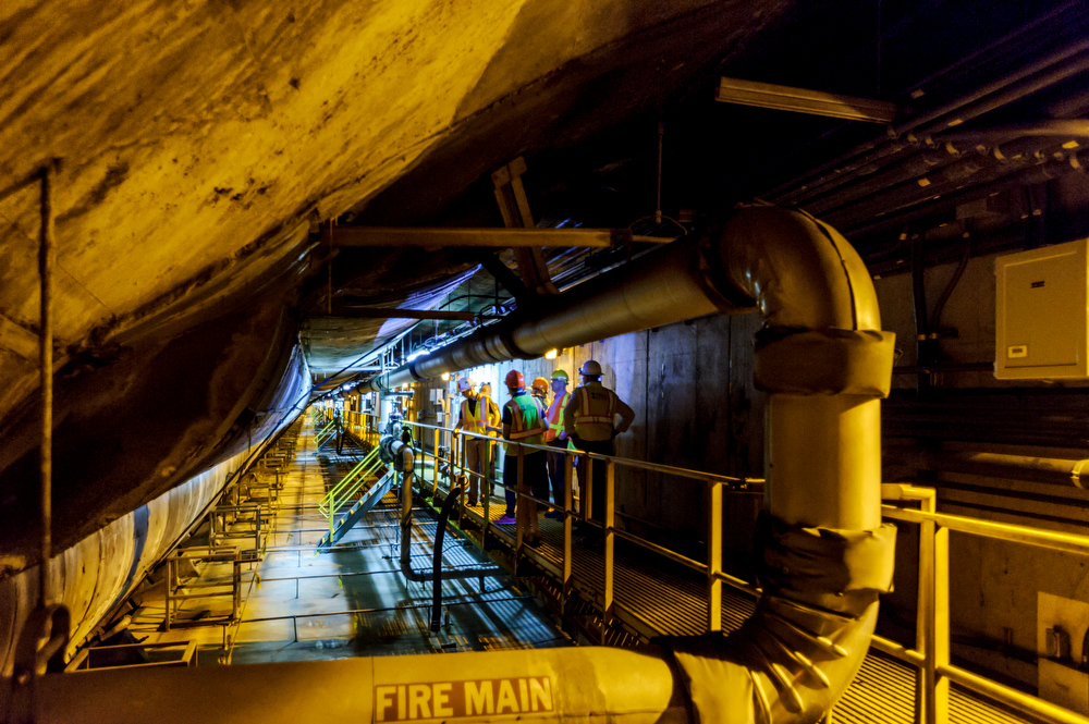 IMCO crews performed modified concrete overlay in seven locations with only one 56-hour closure to complete this portion of the work, which required careful planning to meet tight deadlines and minimize impacts to traffic. These solutions included using a Texas Screed instead of a time-consuming bridge deck paving machine. IMCO’s scope also included major updates to existing fire and life safety systems and associated mechanical infrastructure inside the tunnels including the installation of 60 by 90 by 20-foot Saccardo Nozzles inside incredible tight space. IMCO’s design team scanned the nozzles to create a model and merged the nozzle models with the model of the installation site to see corrections that needed to be made prior to delivery.
