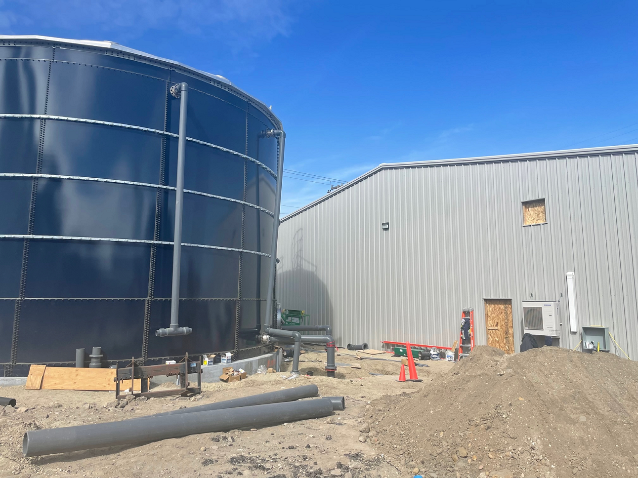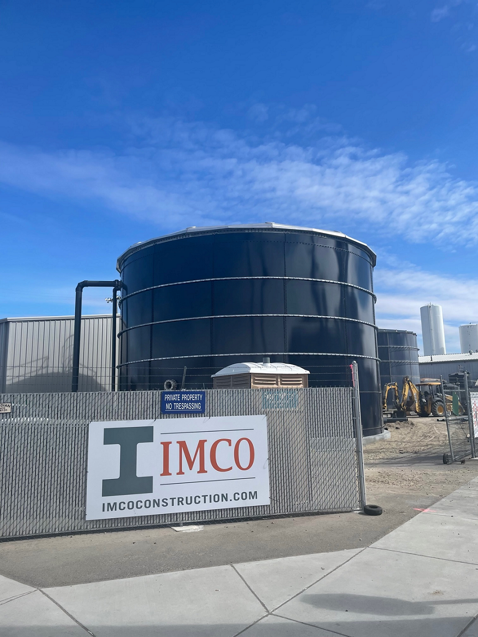 IMCO Construction brought improvements to the industrial wastewater treatment plant at Darigold’s Caldwell butter plant to allow discharged waste to remain compliant with environmental requirements. Construction crews demolished an existing storage building and constructed a new dissolved air flotation (DAF) treatment building, a second glass lined steel equalization tank, and pre-engineered metal building. The DAF unit provides chemical and physical treatment of the industrial waste. Conventionally treatable waste is discharged into the sewer system while solids are removed and pumped into trucks that dispose of the solids generated by the development of the adjacent butter facility.