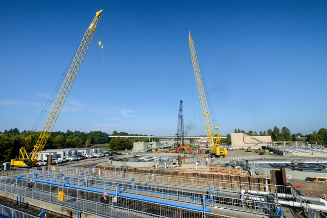 Crews constructed the equalization tank, working their way down using hydraulic jacks to lift the previously built ring above them, while installing the next ring in line. This activity required extensive planning and careful coordination.