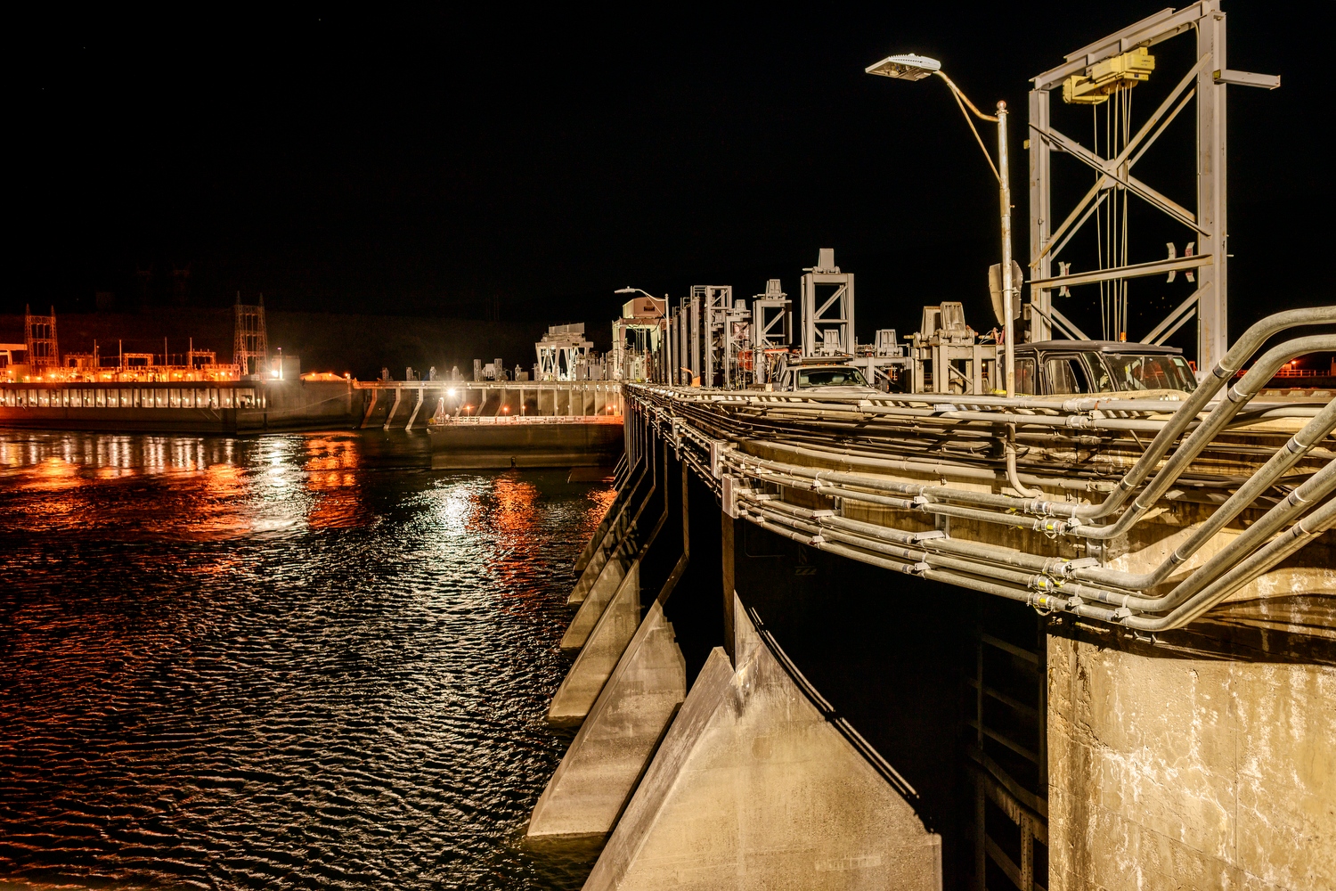 Work included demolition of the existing conduit raceways along the downstream face of the spillway deck, demolition of existing lighting conduits, installation of new lighting conduits and electrical boxes, installation of new LED lights and new lighting circuit wiring, rehabilitation of the existing expansion joints at spillway piers, and concrete repairs. The project furnished and installed new conduit raceways between the powerhouse electrical bay and the middle fish ladder. Structural repairs to the dam included the installation of post tensioned anchors and epoxy injection grouting. IMCO’s team developed detailed work plans and partnered with subcontracts for the post tension anchors and injection grouting. The drilling work that helped stabilize the dam had to be performed over the side of the spillway. The epoxy injection for the crack repair scope was under tight scheduling requirements in order for the PUD to regain spillway access for their fish spill habitat conservation program.