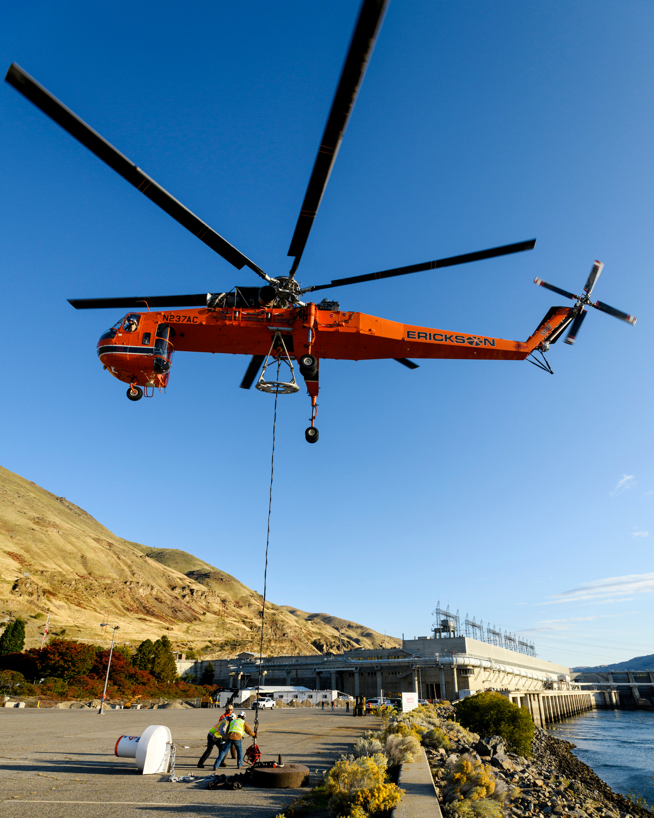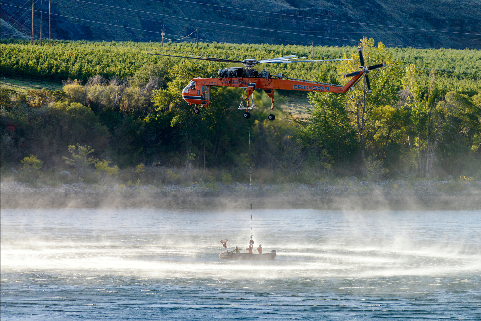 This project involved the removal and disposal of an existing tailrace buoy, its mooring system, and anchor, along with the placement of five district-provided buoy systems to improve dam safety for Chelan County PUD. Work at Rocky Reach Dam was originally planned to be performed using a barge; however, after considerable planning, IMCO’s team developed a more efficient solution that minimized impacts to surrounding dams by utilizing a helicopter instead. This approach allowed the team to complete the buoy replacement in just 53 minutes, compared to the weeks of setup and teardown that a barge would have required.