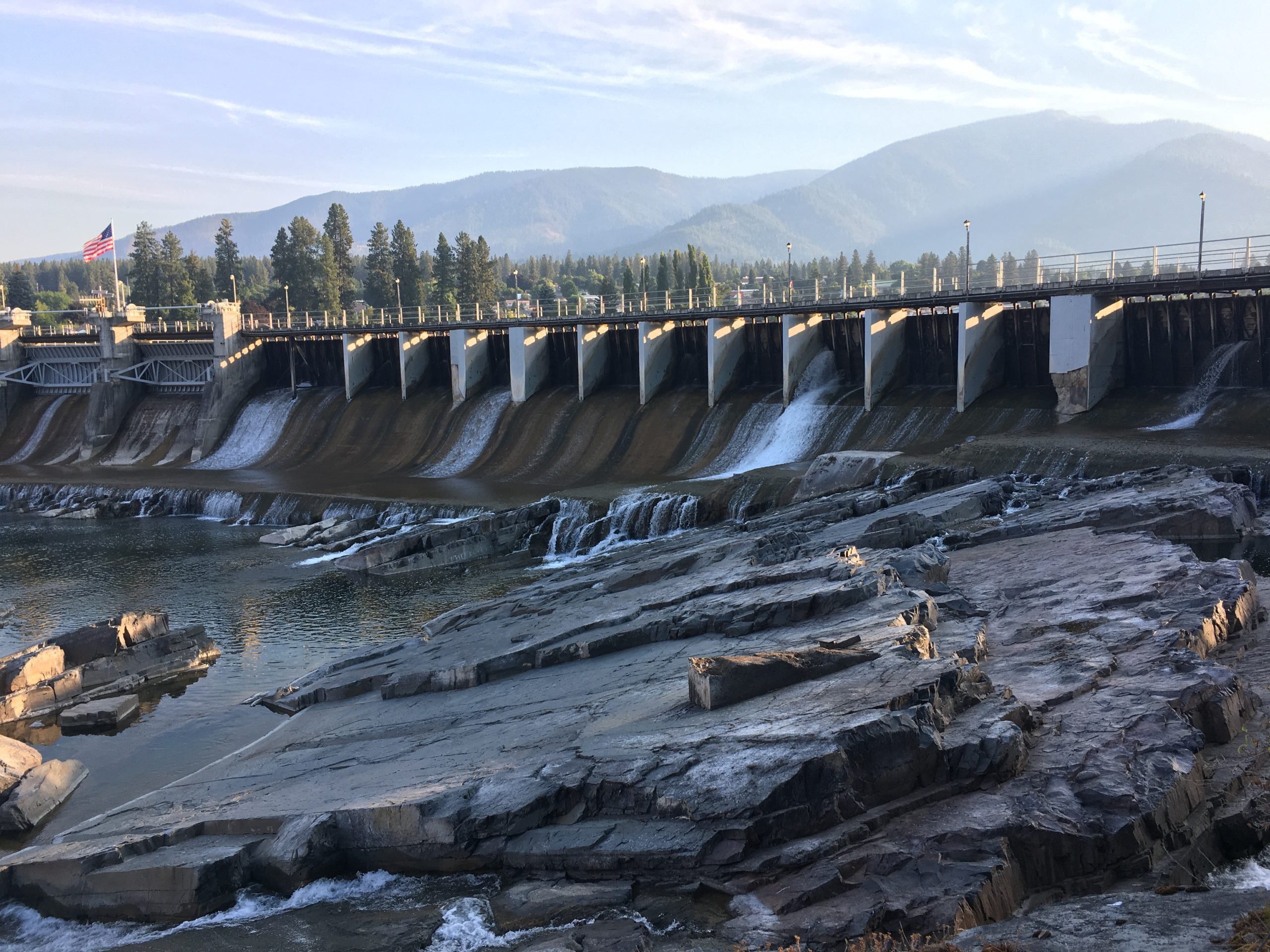 IMCO installed two 41-foot wide radial gates on the main dam spillway of Thompson Falls Dam. The new radial gates replaced the existing flashboard system and provide Northwestern Energy with additional automated spill capacity. The radial gates were installed while keeping the upstream reservoir level full. Work scopes included construction access to the spillway, protecting the work area from water, concrete demolition, concrete placement, structural steel, gate installation, and automated hoist installation.